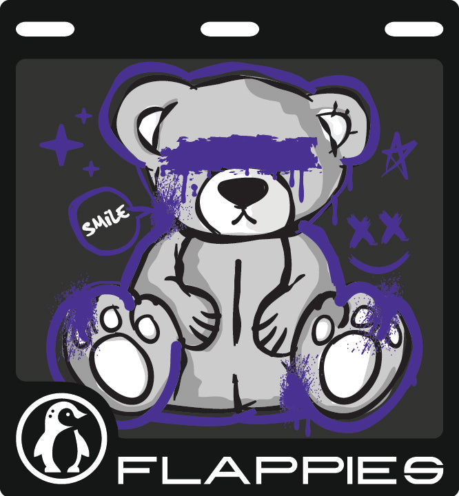 Make a statement with Bear Hugs – Purple Graffiti. Featuring a teddy bear splashed with vibrant purple graffiti and a cheeky “Smile” message, this design adds bold personality to your ride. Perfect for drivers who want to stand out.
